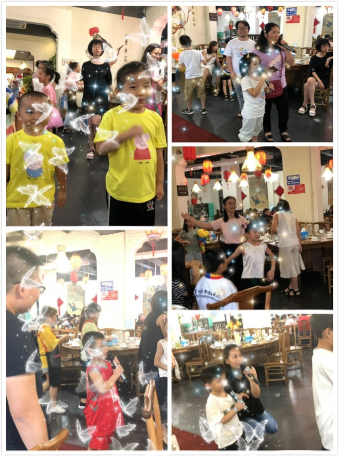 结束愉快刺激的漂流之旅,大家在美味佳肴中开启了晚宴聚会。不仅有地道可口的风味土菜,而且有多才多艺的航芯小朋友们为大家登台献艺,稚嫩悦耳的童谣歌唱,有模有样的开心舞蹈,字正腔圆的童话故事,摇头晃脑的古诗背诵,还有哼哈提气的跆拳道表演,小家伙们精彩纷呈的演出使得晚宴现场,惊喜连连!